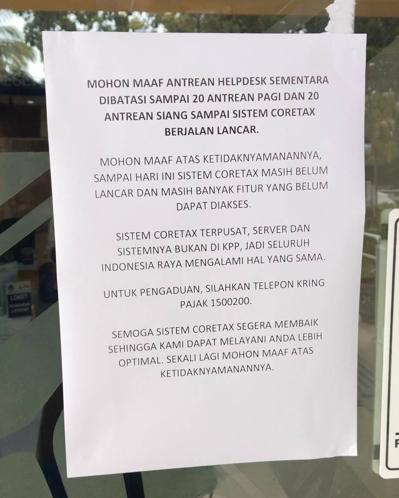 Pengumuman di KPP yang didatangin orang orang bingung dan frustrasi karena coretax.